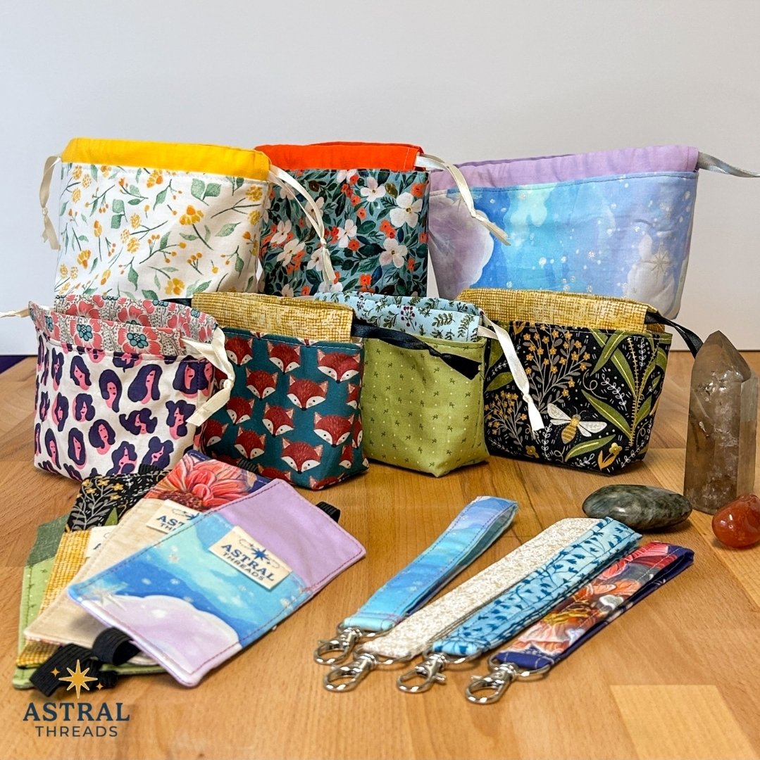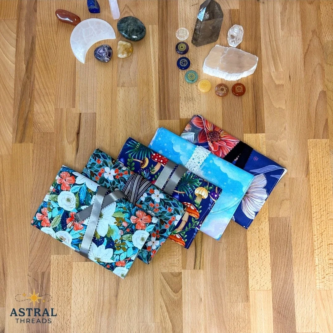 Hi, I’m Marina, the maker behind Astral Threads. I grew up in a crafty household, and sewing has stuck with me as one of those things that’s equal parts rewarding and frustrating (depends if my seam ripper makes an appearance). My work is guided by colour, nature, and the kind of witchy inspiration that shows up when you spend too much time around tarot cards. At this market, you’ll find tarot wraps and bags, small quilts and blankets, kitchen scarves, lanyards, drawstring bags, and more. Think useful: but prettier.